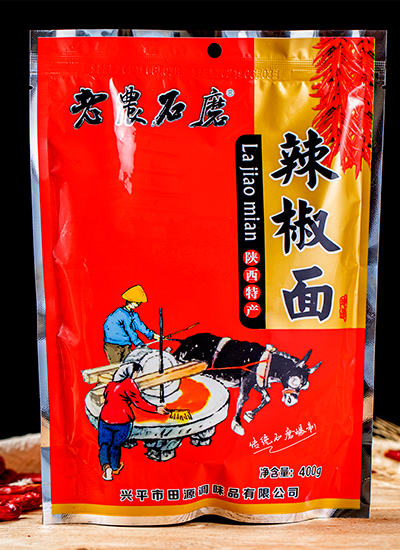 老農石磨系列產品選用興平原產線椒,具有皮薄、肉厚、粒小、色澤鮮亮、香辣春香、辣不過喉的特點;人工精挑細選、去蒂除雜,使用旋轉式鍋爐恒溫炒制確保辣椒色澤鮮艷味道醇香;沿用原始青石碾磨工藝,利用青石清涼特性收到了良好的碾磨散熱效果,保留辣椒原有的自然香味。經篩選、炒制、碾磨等多到古法工藝使產出的辣面色澤紅亮,辣味濃郁,營養(yǎng)豐富,味道醇香。